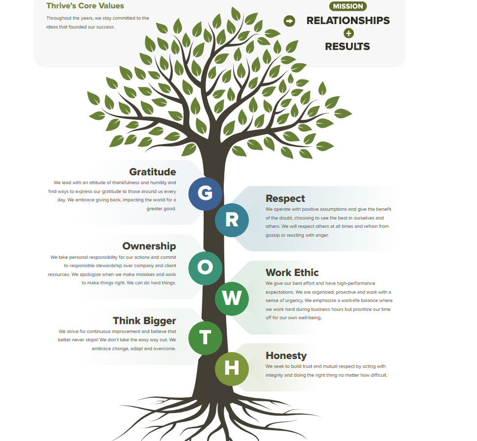 Thrive’s success is deeply rooted in its culture and values. We maintain a strong company